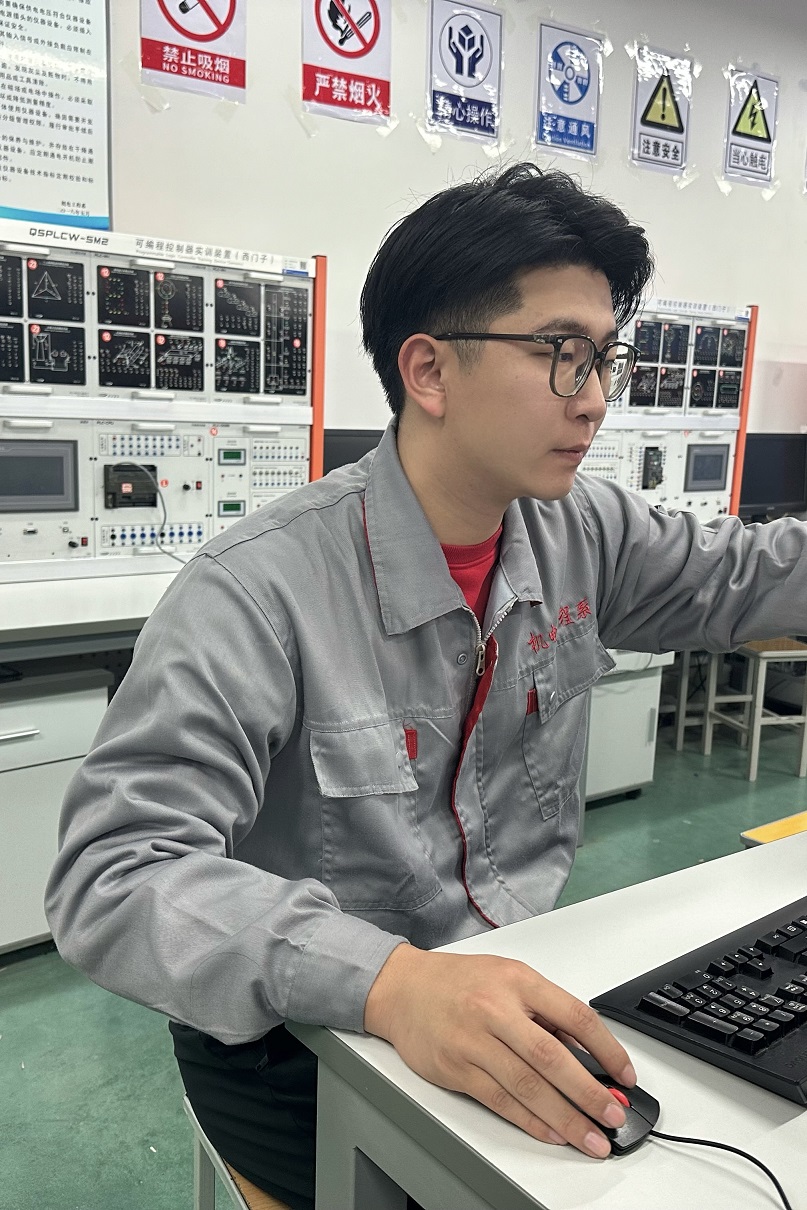 于志勇,机电工程系专业教师,讲师,维修电工技师,山东省技术能手、全国技术能手。主要担任《PLC技术应用》、《变频器与伺服驱动技术》等课程授课任务。获得第46届世界技能大赛山东省选拔赛电气装置项目一等奖,中国第一届职业技能大赛电工项目铜牌,担任第47届世界技能大赛中国赛区工业控制项目技术支持,中国第二届职业技能大赛陕西省选拔赛电工项目裁判员,带队参加山东省职业院校技能大赛获得三等奖1项,山东省大学生智能制造大赛“智能装备展示”赛道获得二等奖1项,在《中国教师》杂志社发表论文《西门子S7-1500PLC与在功力机器混合系统中的设计与应用》,研发实用新型专利“一种可定量下料的自动混合装置”并完成社会服务项目“功力机器越南自动化产线项目”。