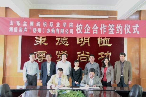 4月25日,我院与海信容声(扬州)冰箱有限公司校企合作签约仪式在学院办公楼第一会议室举行。海信容声(扬州)冰箱有限公司总经理张玉清一行,学院院长孙志斌、副院长张玉惕、副院长梁菊红、校企合作办公室及相关处室系负责人出席了签约仪式。