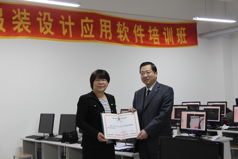 2012年2月6日至10日,台湾实践大学陈正兴教授,辅仁大学许郁玟教授,羽冠科技公司代表张菀真女士在我院举办创意服装设计应用软件培训班,2月10日上午,学院院长孙志斌,副院长梁菊红,组织人事与宣传处处长袁雷到培训现场与许郁玟教授就学院教师培养、专业建设以及进一步加强合作进行了深入的探讨。随后,学院院长孙志斌为许郁玟教授颁发了学院客座教授聘书。