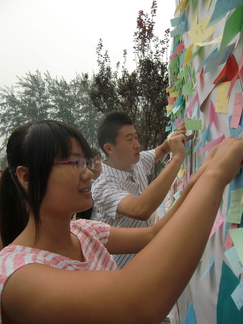 院学生会别出心裁地设计了一个“树”型展版,便利贴就是“祝福树”的树叶,上面写满了对老师的祝福。层出不穷的祝福语句承载着学生们的感恩之情,这些发自肺腑的心声汇成了祝福树上的颗颗感恩之心。