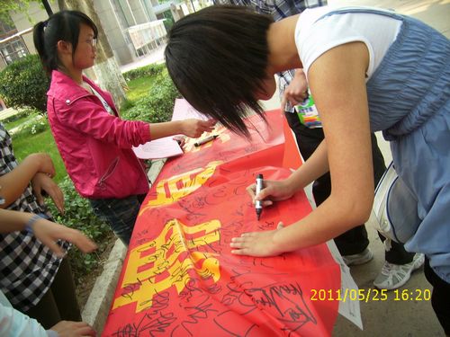 5月25日是心理健康活动宣传日,我院学生工作处举行了心理健康教育活动。活动主题是:“拥有健康心理,拥抱美好人生。”活动内容包括:心理健康图片展览,心理健康宣传横幅签名,发放心理健康资料,心理问询,心理趣味小测试等。活动受到广大同学的欢迎,大家认真地在宣传横幅上签上自己的名字。