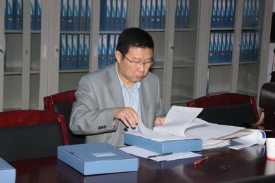 山东省丝绸协会秘书长高亚军在查阅资料