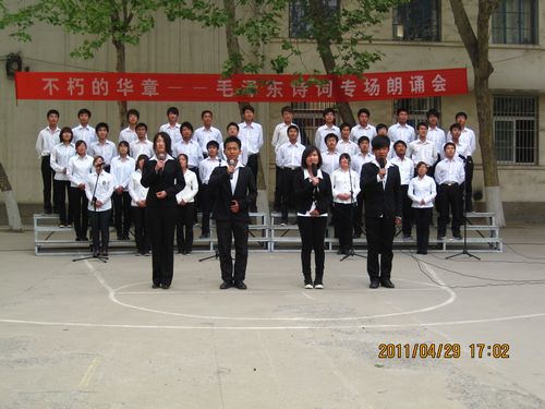 为培养学生的爱国主义情怀,提高学生的文学修养,4月29日下午,院团委在篮球场举行了“不朽的华章--毛泽东诗词专场朗诵会”,以诗歌朗诵的形式来纪念这位伟大领袖和文学家。