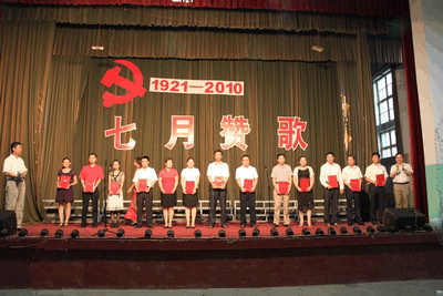 7月1日下午,在建党89周年之际,我院举行了七一表彰暨庆祝建党89周年诗文朗诵会,表彰了年度先进党支部、优秀党员和党务工作者,并用饱含深情的朗诵表达对党的无限忠诚和热爱。