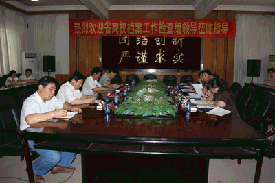 检查组在办公楼四楼会议室听取了我院档案工作的汇报。会议首先由党委书记高素贞致欢迎词并介绍了学院的历史沿革、发展建设等基本情况,随后纪委书记余中兴从我院档案工作概况、自查自评、主要成绩和存在问题及拟采取措施等几个方面向检查组作了汇报。