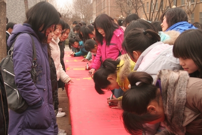 3月8日下午4点,由院团委主办、学生会承办的“节能减排、我们在行动”主题签名活动在操场举行,并取的圆满成功!