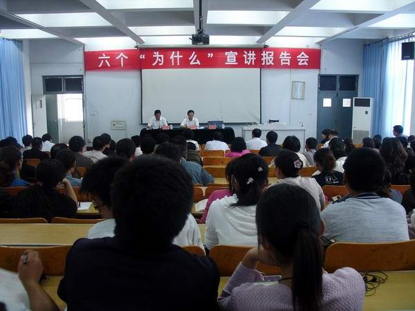 在报告会上,徐团长重点围绕六个“为什么”提出的背景、中国改革开放以来意识形态的新变化和如何把握六个“为什么”的中心实质等重大问题,结合当前意识形态的特点,联系广大师生的思想工作实际,进行了深入浅出、生动活泼的宣讲。在凝聚人心、释疑解惑、帮助广大师生深入把握社会主义核心价值体系上起到了重要作用。