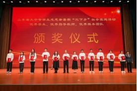 诗会的第一篇章,“榜样力量,追光前行”。学校领导为荣获国家、省、市、校各级荣誉的青年典型颁奖,表扬他们在青春的赛道上奋力奔跑,勤于学习、勇于创新、敢于超越。