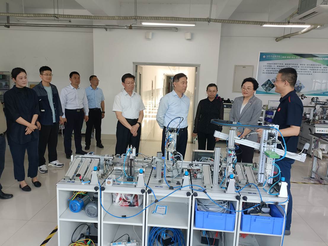 范桂君一行先后参观了学院现代加工中心、电气装置项目中国集训基地、机电一体化实训场地、电子技术实训场地、智能制造实训中心、现代餐旅实训中心等实习实训场地和学院创新发展成就展厅。