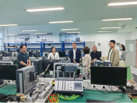 于毅一行参观了智慧校园服务中心和机电工程系实训场所。
