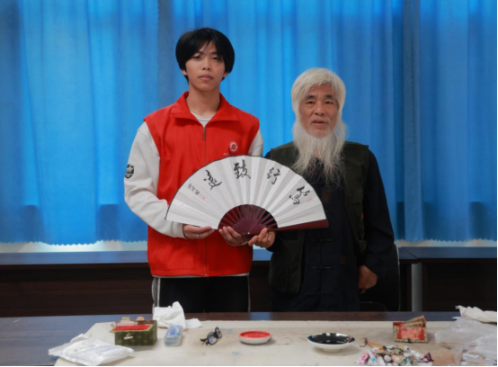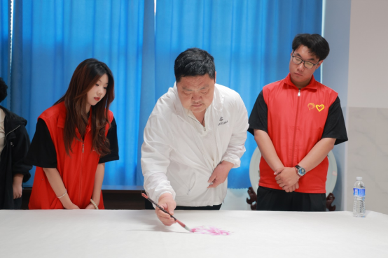 学院党委副书记唐勋代表学校接受淄博市工艺美术大师等文化从业者赠送的作品。