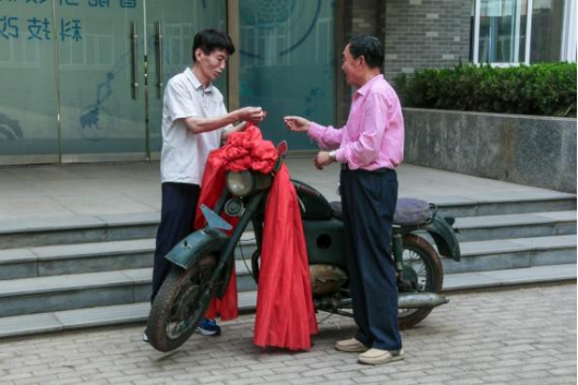范胜利向张维杰交接摩托车钥匙。