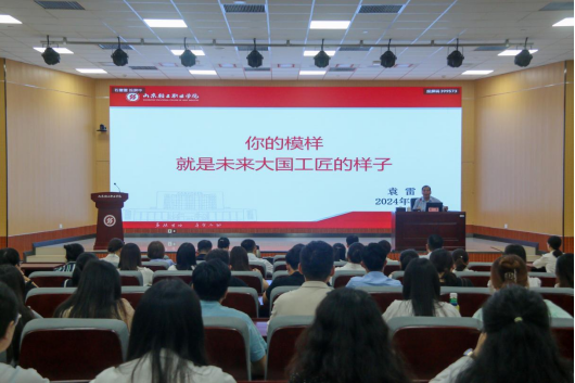 袁雷以《你的模样,就是未来大国工匠的样子》为题作专题报告,主要围绕学校发展目标、办学理念和师德师风三个方面展开。袁雷全面系统介绍了学校发展历程,从职业教育发展的关键节点洞察机遇和挑战,进一步提出“加快建成以时尚创意为主要特色的国内一流、国际有影响力的高水平高职院校”的发展目标,学校坚持特色发展,不断提升办学水平。