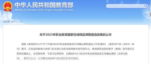 新突破!我校课程成功入选职业教育国家在线精品课程