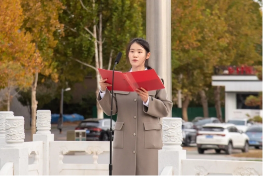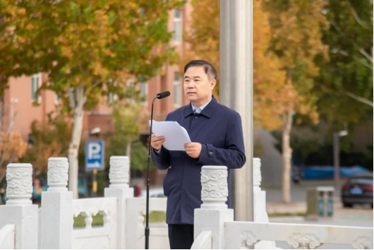 本站讯(通讯员 卢超)11月4日,山东轻工职业学院举行11月份升国旗仪式。学校党委书记范桂君讲话,学生代表张晓雅作国旗下演讲。学校领导班子成员、各部门及商务贸易系全体教职工、学生代表等600余人参加。