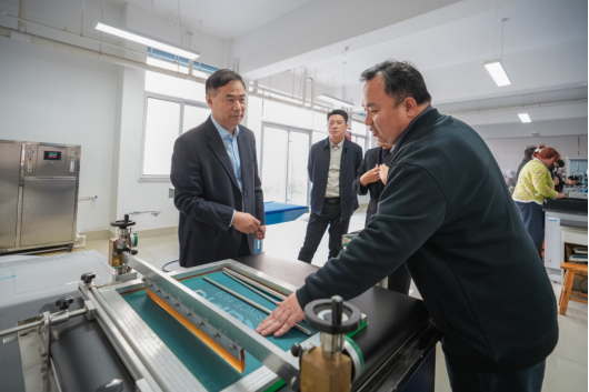 范桂君先后走访了健康管理系、商务贸易系、纺织工程系的13个实训(验)室,详细了解各实训(验)室的功能定位、设施设备、开展的实训(验)项目等,察看了蜡染、轧染、数码印花等实训(验)作品展示,并与系院负责人、实训(验)室老师就实训(验)室建设和与运行等进行了深入的交流与探讨。