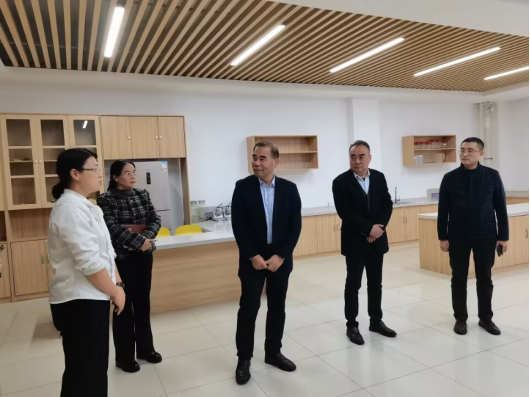 袁雷先后实地查看了健康管理系营养膳食制作中心和食品加工实训室,详细了解了“轻馨烘焙”工坊的运行情况,并与项目负责人进行深入交流。