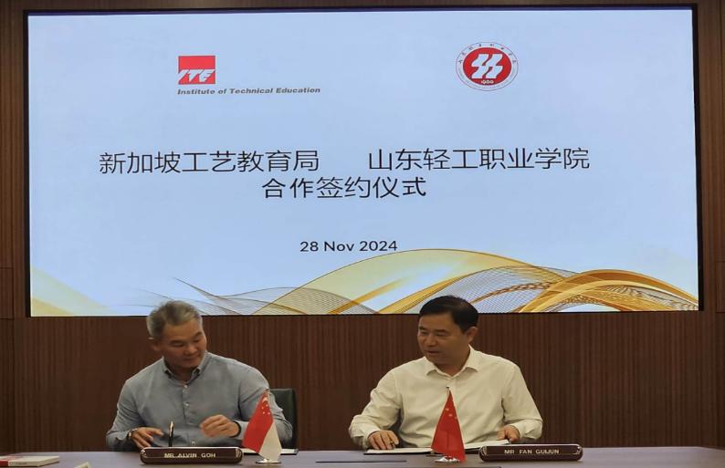 本站讯(通讯员 姜兴国)11月28日,新加坡工艺教育局、山东轻工职业学院合作签约仪式在新加坡工艺教育局东区学院举行。新加坡工艺教育局东区学院院长吴建兴、山东轻工职业学院党委书记范桂君签署交流合作意向书,开启两校交流合作、互惠互利新篇章。