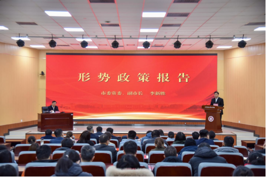 本站讯(通讯员 姜兴国 崔凯杰)12月18日,市委常委、副市长李新胜到我校为师生宣讲党的二十届三中全会精神并作形势政策报告。学校党委书记范桂君及相关班子成员,各系院党总支书记,各处室主要负责同志,教师及学生代表聆听报告。