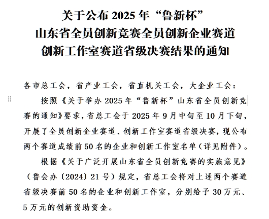 本站讯(通讯员 梁久平 崔英)近日,山东省总工会公布2025年“鲁新杯”山东省全员创新竞赛全员创新企业赛道创新工作室赛道省级决赛结果,山东轻工职业学院机电工程系烟承梅创新工作室凭借扎实的科研实力、突出的创新成果及深厚的育人底蕴,成功获评山东省省级创新工作室,这是学校深化产教融合、推进创新型人才培养的重要突破。