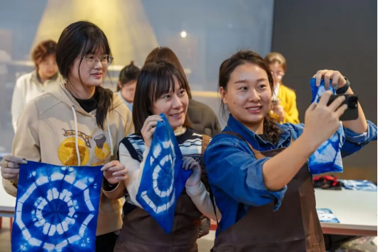 3月5日上午,学校与淄博市行政审批服务局在国际时尚学院一楼大厅举办“巾帼心向党 非遗润芳华”主题文化体验活动。活动伊始,国际时尚学院院长李群英带领来宾参观纺织服装全链路数字化实习实训基地,展示学院在纺织服装专业建设、数字化教学与非遗时尚融合的成果。国际时尚学院党总支书记杨永亮介绍了非遗扎染技艺、非遗宋锦饰品制作两大体验环节。体验现场,女职工们在扎染区跟随指导老师学习捆扎、浸染、固色等技法,让白布幻化出独特纹样;在宋锦饰品制作区穿针引线,将宋锦典雅纹样与现代饰品设计结合,制作胸针、挂饰等作品,在交流创作中领略非遗底蕴,增进校地情谊。
