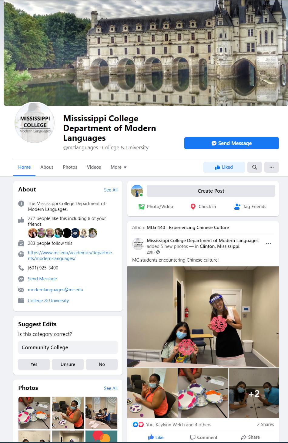 当地时间9月22日,美国密西西比学院现代语言系在社交媒体Facebook官方账号报道了吕宁老师的《体验中国文化》课程,文章题为MC Students Encounter Chinese Culture《密西西比学院学生与中国文化相遇》。