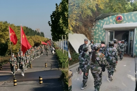 为了确保拉练行军安全,学校规划了环形路线,最大限度地减少路口数量和路面穿插。为了减少行军劳累,行军途中一路歌声相伴,提振士气,鼓舞斗志。拉练队伍一侧既有教官的耐心的指挥,也有学管主任、辅导员老师、志愿服务的学哥学姐们的暖心陪护,队尾还有收拢车和医务人员跟随保障。行之半途稍事休息,历时一个半小时到达淄博市凤凰山国防教育基地。