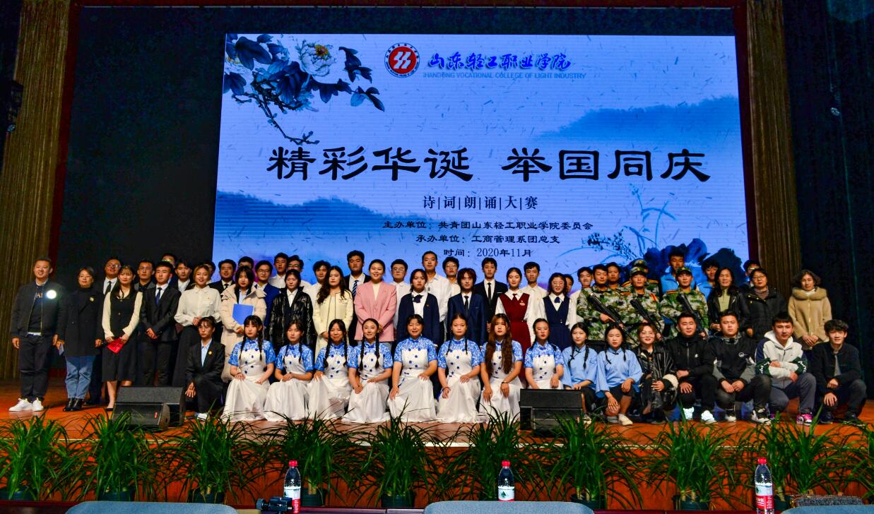 诗歌是文学宝库中的一颗璀璨明珠,为弘扬传统文化,培养家国情怀,提高同学们的思想觉悟,增强爱党爱国之心,11月19日,由学校团委主办、工商管理系团总支承办的“精彩华诞 举国同庆”诗歌朗诵大赛在图文信息大楼学术报告厅拉开帷幕。