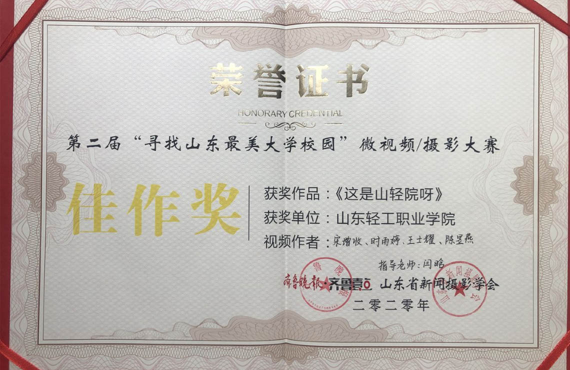 “寻找山东最美大学校园”微视频/摄影大赛是由齐鲁晚报·齐鲁壹点、山东省新闻摄影学会共同主办,全省高校师生的大型竞赛活动。 本次大赛我系共选送3件作品,其中陈昱燕、宋增收、时雨婷、王士耀同学负责的作品《这就是山轻院呀》获得视频类‘佳作奖’;王晨冉同学负责的作品《四季萌芽》获得摄影类‘佳作奖’。陈燕昱、时雨婷同学负责的作品《踏光而行》也被荣推学习强国网站。