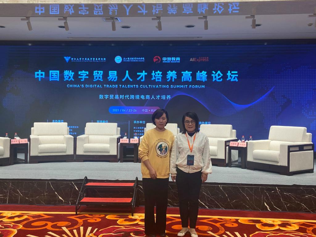 2021年4月23日至4月26日,商务贸易系教学副主任韩鑫玮、商务教研室主任庄明星到浙江杭州参加2021年中国数字贸易人才培养高峰论坛。