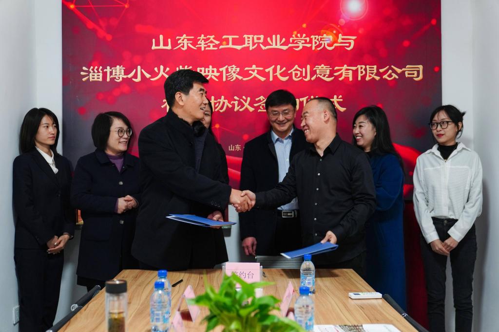 首先在淄川区供销社乡村振兴直播助农实践中心与淄博小火柴映像文化创意有限公司举行框架协议签约仪式。淄川区供销社党委书记、主任刘智强,淄博小火柴映像文化创意有限公司总经理孙春晓出席。校企双方将以签约为契机,依托淄川区供销社乡村振兴直播助农实践中心,校企双方互通有无,优势互补,运用新媒体直播农村农副产品,服务于乡村振兴。