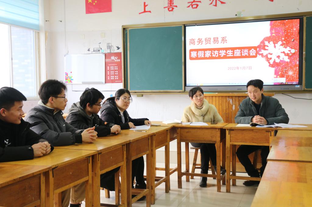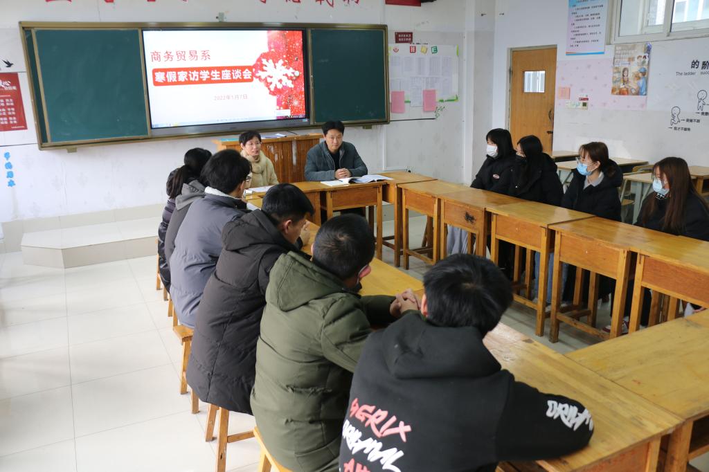 为全面落实立德树人根本任务,加强家校沟通,更好的关心、帮助学生,2022年1月7日下午,商务贸易系在T6302召开2022年寒假家访学生座谈会。
