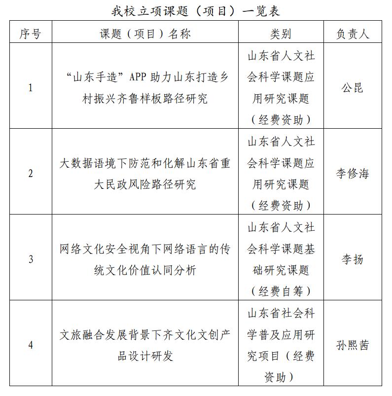 喜报:我校4项课题(项目)获2022年山东省人文社会科学课题及社会科学普及应用研究项目立项