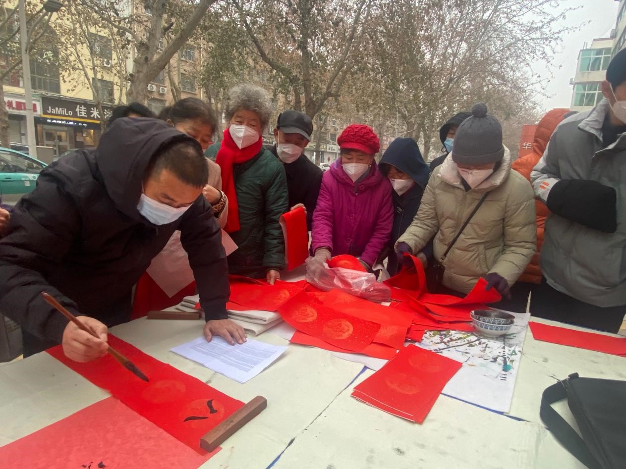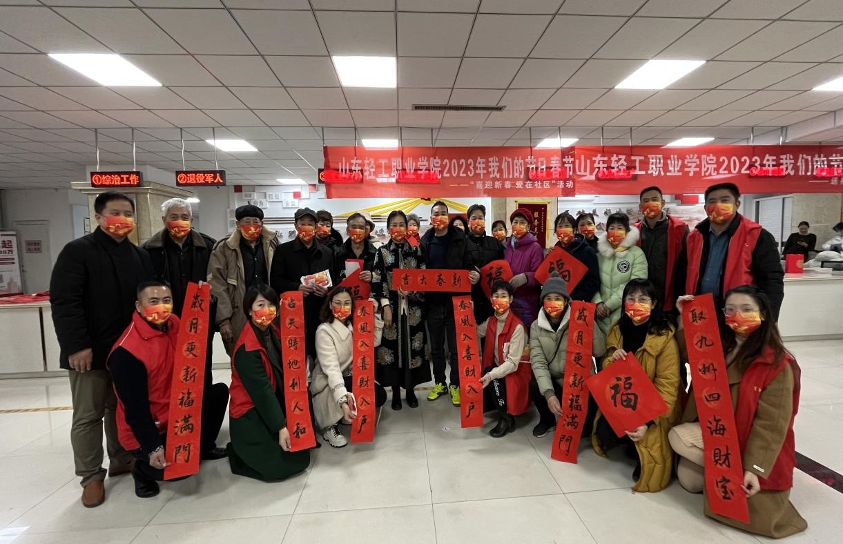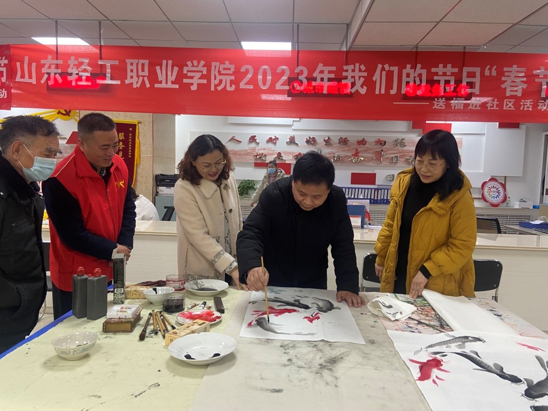 为了迎接即将到来的新春佳节,弘扬中华优秀传统文化,营造喜庆祥和的节日气氛,丰富社区居民精神文化生活,2023年1月13日,山东轻工职业学院纺织工程系联合商务贸易系,纪委机关党支部等部门邀请中国美术家协会会员、山东轻工职业学院优秀毕业生、杰出校友王红运以及我院书法爱好者霍启坤老师共同走进大世界社区,开展我们的节日“春节”—送福进社区活动。