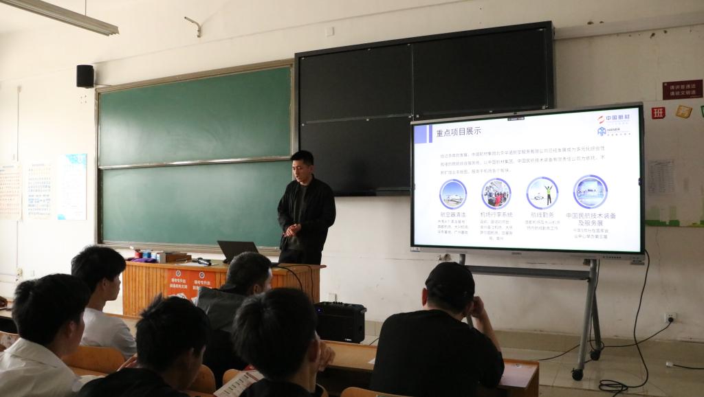 北京华诺航空有限公司招聘专员王主管讲述了从实习生一路走来工作经验,以及职业规划,同学们受益匪浅,还很有耐心地对同学们最关心的工资、福利以及员工关系和个人发展等问题进行了详细的解答。