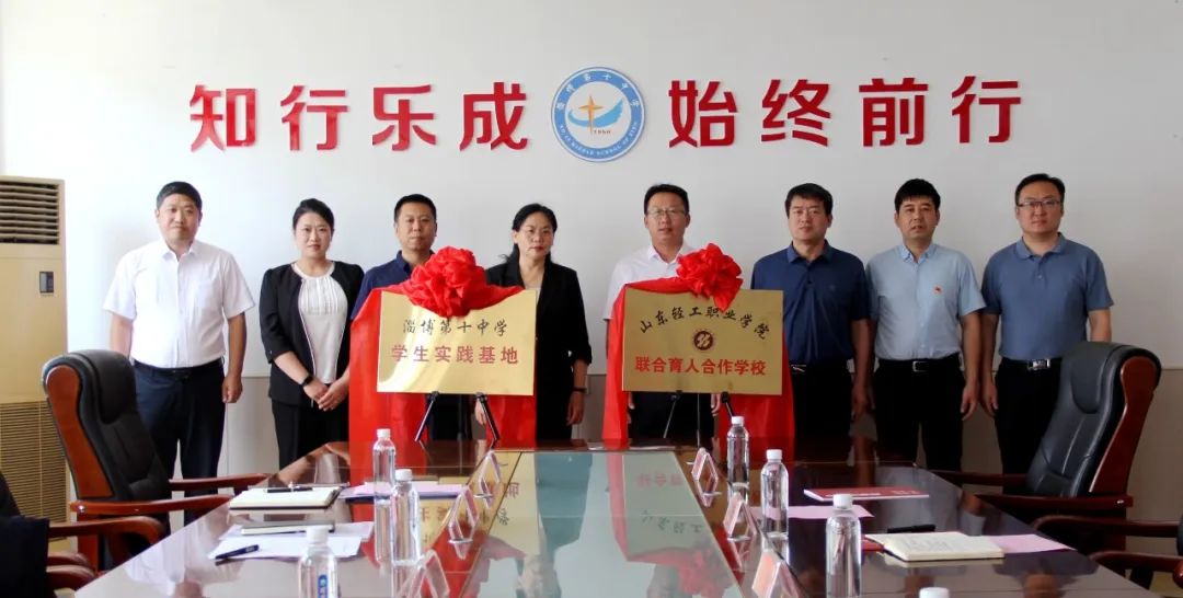 最后,双方签署了合作协议,为山东轻工职业学院联合育人合作学校、山东省淄博第十中学学生实践基地揭牌。