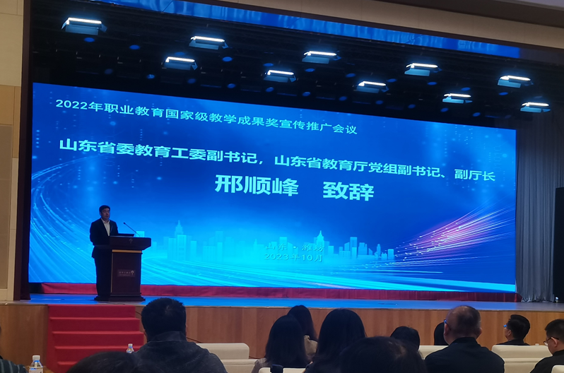 本站讯(通讯员 齐潇)10月21日至22日,2022年职业教育国家级教学成果奖宣传推广会议在山东潍坊召开。来自全国各地职业院校、教育行政部门、教科研机构的有关负责人和教师共400多人现场参会,5.2万人次参加线上会议。我校选派教务处处长杨新月、教师齐潇参加现场会议,各系院老师参加线上会议。