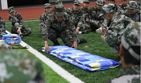 各系院联合军训教官深入学生宿舍进行内务指导,宿舍成员形成全力以赴、力争上游的良好氛围,展现出积极向上的态度和优良的团队合作精神,宿舍间、同学间互帮互助,共同提高宿舍内务水平。一压一折、三捏两修,顷刻间被子便在同学们手中变成方方正正的“豆腐块”。