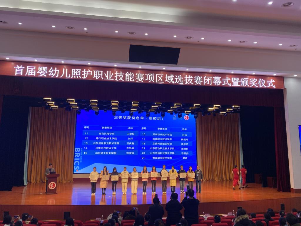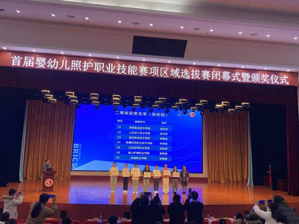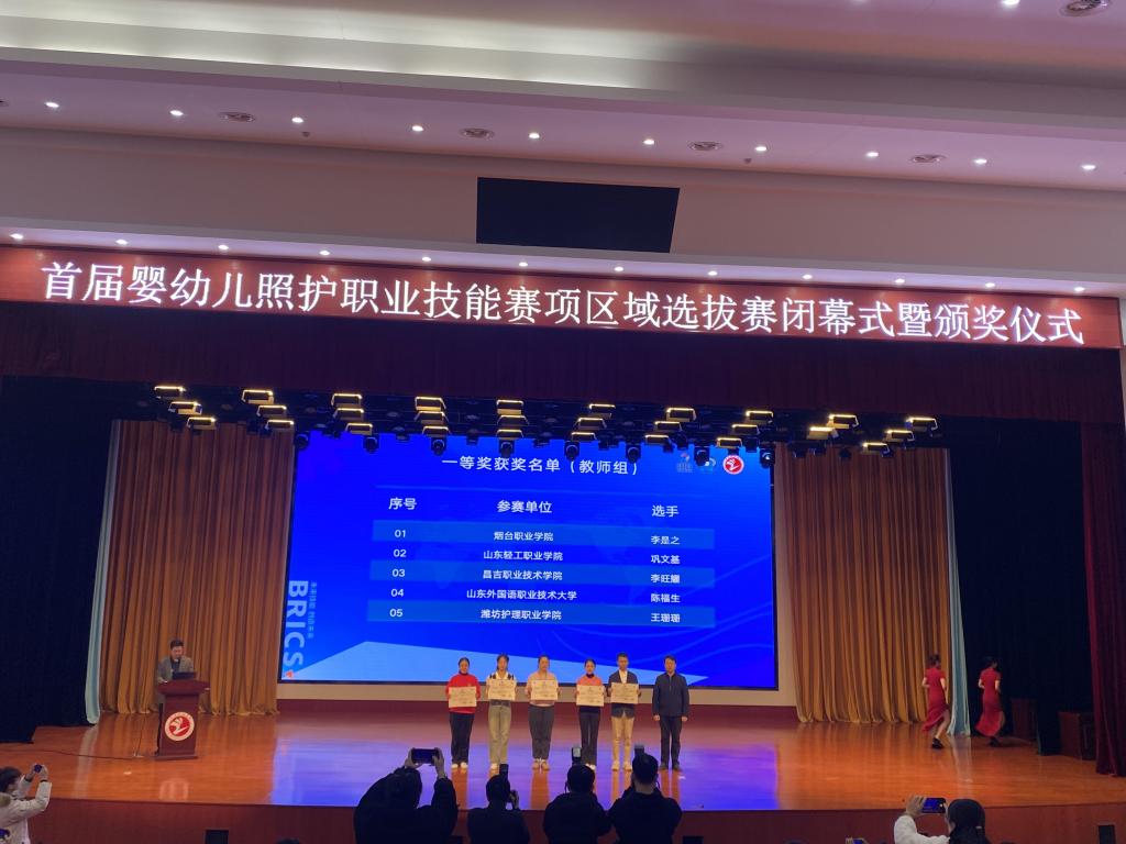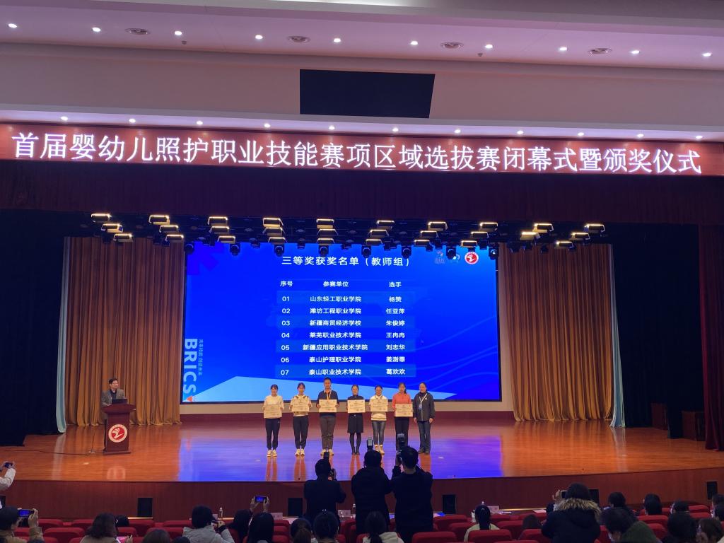 本站讯(通讯员 姜宜汝)11月10日-13日,2023一带一路暨金砖国家技能发展与技术创新大赛首届婴幼儿照护职业技能赛项区域选拔赛在山东烟台举行,来自全国47所院校、130余名师生选手参赛。经过激烈角逐,我校健康管理系学生段冯秀、刘海娟分别获二等奖、三等奖,教师巩文基、杨赞分别获一等奖、三等奖,巩文基老师将代表山东赛区教师选手参加国赛。