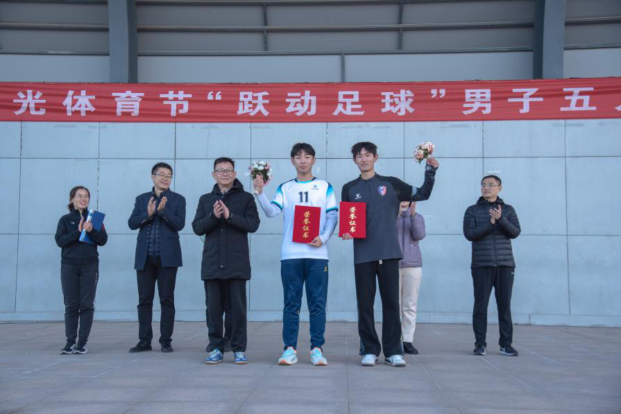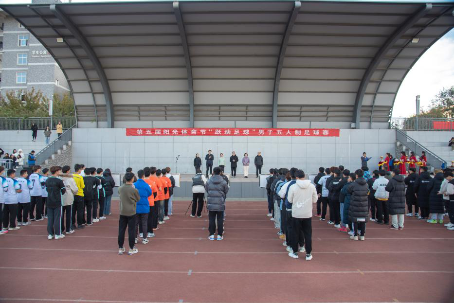 本站讯(通讯员 崔英 贾希宇)11月16日下午,学校第五届阳光体育节“跃动足球”男子五人制足球赛在精彩的师生友谊赛中顺利闭幕。学校党委副书记唐勋出席闭幕式并致辞。