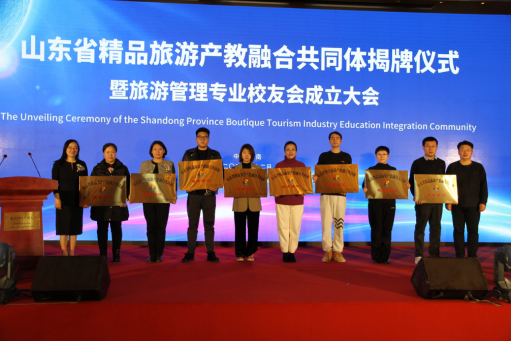 山东省精品旅游产教融合共同体由山东师范大学、青岛酒店管理职业技术学院、山东文旅集团有限公司牵头,联合102家行业组织、学校、企业等共同参与组建,旨在以平台为载体,以产业为依托,以市场为导向,以项目为纽带,发挥共同体成员各方优势,促进人才系统培养,推进企业高质量发展,深化产教融合,打造山东省精品旅游产教融合共同体品牌。