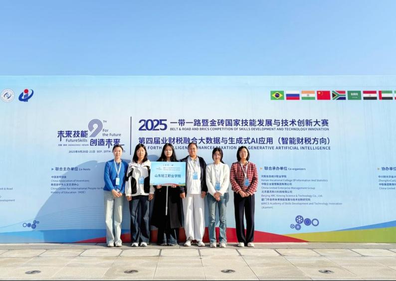 本站讯(通讯员 张慧丽) 9月20日,2025一带一路暨金砖国家技能发展与技术创新大赛之第四届业财税融合大数据与生成式 AI 应用(智能财税方向)赛项决赛在河南举行,此次大赛吸引了全国80余所高职院校师生代表同台竞技。经过激烈角逐,学校教师安欣仪,学生团队李佩元、张慧茹、常继芸、张昊杰,均获得全国总决赛三等奖。