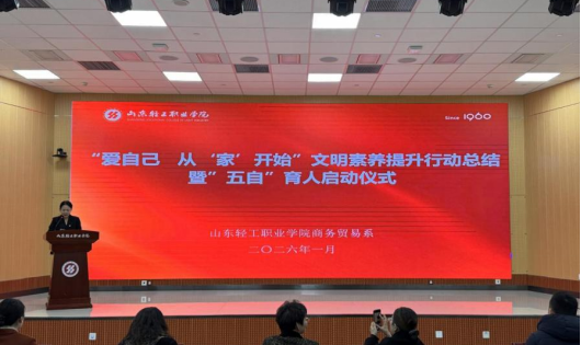 1月8日上午,商务贸易系“爱自己 从‘家’开始”文明素养提升行动年度总结暨“五自”育人启动仪式热闹开场。这不是一次简单的会议,而是一场关于“如何长大”的集体对话。党委学生工作部部长李敏、商务贸易系党总支书记孙琳霞、艺术设计系党总支书记曹荔等与百余位学生代表一起,共同回顾了“小家”的焕新,也开启了“大家”共治的新篇章。