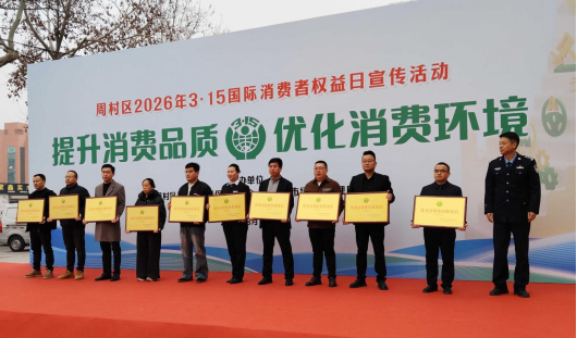 本站讯(通讯员 李帅)3月14日,周村区2026年3·15国际消费者权益日宣传活动正式举办,本次活动以“提升消费品质,优化消费环境”为核心主题,聚焦消费维权、市场规范、权益保障等重点工作,表彰一批在消费维权领域表现突出的先进单位。我校凭借规范的维权机制、高效的服务效能和扎实的工作成效,成功获评周村区优秀消费维权服务站,后勤处副处长郭超代表学校出席活动并领奖。
