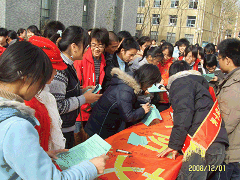 为提高大学生对艾滋病的认识和自我防护意识,引导他们养成良好的生活习惯,倡导健康的生活方式,远离艾滋病,12月1日,学院红十字会开展了主题为“你我共参与 遏制艾滋病”的宣传教育系列活动。红十字会志愿者向过往同学发放艾滋病防治宣传手册,积极宣传艾滋病预防措施,倡导文明健康的行为方式,使同学们对艾滋病有了进一步的了解,最后志愿者和同学们一起在“关爱你我 预防艾滋病”的横幅上签下了自己的名字,并表示要以实际行动争做防艾滋病先锋,为营造和谐社会贡献自己的一份力量。