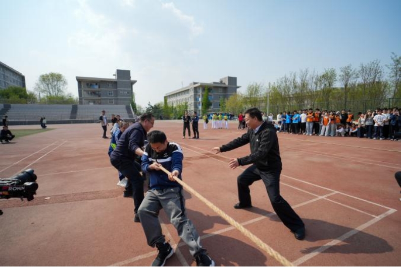 活动现场,师生共同参与健步跑、拔河、跳大绳、同心鼓等趣味项目,以行动诠释团结拼搏的体育精神。