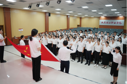 会上,举行了“青蓝工程”结对仪式,为指导教师代表颁发了聘书,指导教师代表安敬鑫和新教师代表王嘉宁分别表态发言。全体教师面向国旗,庄严宣誓。