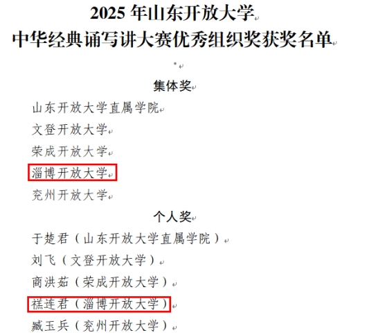 学校在山东开放大学2025年中华经典诵读写大赛中喜获佳绩
