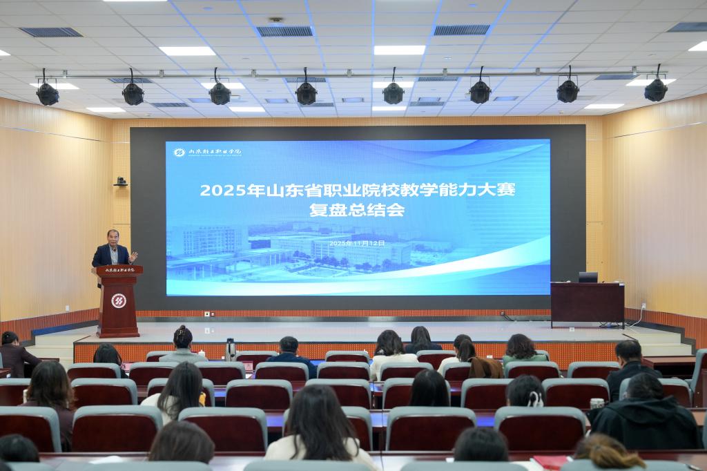 本站讯(通讯员 李子怡)11月12日,我校在图文信息大楼K203召开2025年山东省职业院校教学能力大赛复盘总结会。会议系统总结备赛经验,发挥获奖团队示范引领作用,推动大赛成果转化为教学改革实效,全面提升教育教学质量与教师专业能力。学校党委副书记、校长袁雷出席会议并讲话,党委委员、宣传部部长夏文燕主持会议。