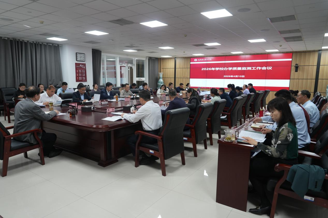 本站讯(通讯员 李媛媛)4月10日下午,学校在图文信息楼K817会议室召开2026年度办学质量监测工作会议,全面总结2025年办学质量监测工作,深入分析发展短板弱项,系统部署2026年重点工作任务。党委书记范桂君出席会议并作总结讲话,党委副书记、校长袁雷主持会议。校领导班子成员、各二级系院行政负责人及相关处室主要负责人参加会议。